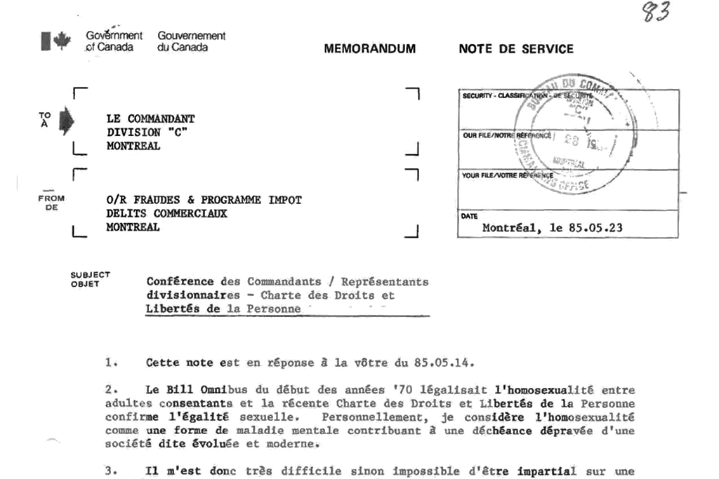 Nous collaborons avec le gouvernement du Canada pour recueillir des documents historiques sur la purge LGBT.
